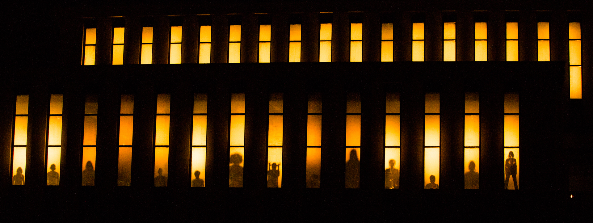 Alte Schule emerges from within a chosen building. Different from CongloméraT, Alte Schule uses a lighting device specially created for the occasion. In addition, we were fortunate to be able to use the talents of the choreographer Clint Lutes to work with locally recruited amateur and professional dancers, and to also work on the light and sound. The building is transformed into a colossal creature, a nest of magical beings, even a kind of spaceship. The result being a truly surrealist spectacle!